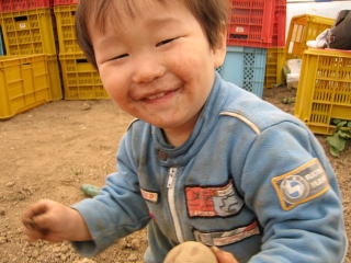 | 2008年は、約5.5トンの種イモを切りました と言いましても、大きいものは4分の1に、3分の1、半分、小さいものはそのままです。 左の写真は、ビニールハウスの中に種イモを並べてるところです、浴光催芽と言って陽にあてます。発芽を促進、揃えるらしいですが・・僕は今年が初めての挑戦です。 でも、全部は無理でした・・ ![]() 今年は長男が手伝ってくれました。 まだ、1歳半ですが、一番楽しそうです。 土でも石でも口に入っているのが、ちょっと気になります。 札幌のはぐくみの皆さん、イモ切応援ありがとうございました |