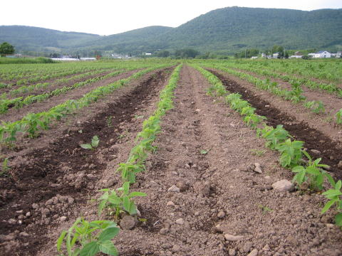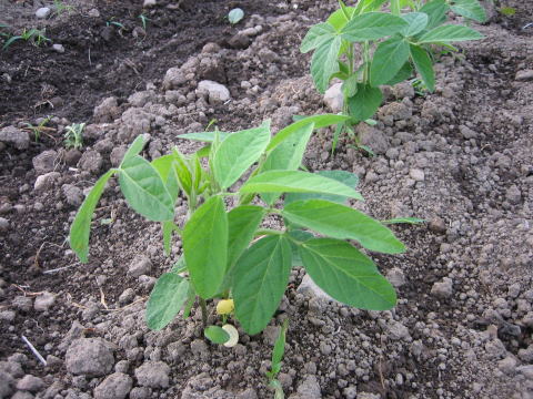 大豆 2002年にスズマル、小粒大豆を播種。 化学肥料、家畜糞などの堆肥、農薬は使っていません。種も自分で採っていますので、消毒もされていません。 この大豆は、あの肥料を吸って育っていません 太陽と雨、土、そのほか自然の恵みだけで育っています 環境に与える負荷も少ないほうです 慣行農法と比較すると、収量は随分少ないですが、 丈夫に育っています、病気になる事も、今のところはないです、というか、僕が気にしていないのかもしれません。 |
