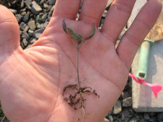 | 5月22日 トマトの定植をしました。 ![]() 慣行のものと違い、あまり大きくなりません。 そうですね、比較できる画像がないのですが、肥料の入ったものから見ると、3分の1位の大きさでしょうか トマトを定植しているところです。トマトが小さくて分かりませんね・・・ハハハ 写真の様に農業用のポリでマルチをしないで植えている人は・・・はたしているのでしょうか? 北海道、ここは寒い6/4今日久久久しぶりに暖かかったです。 マルチの効果はやっぱり暖かい、地温を上げる、草取りがいらない、乾燥を防ぐ、かなりの優れものです。 ちなみに昨年マルチ有りと無しで比較してみました。 マルチなしの方は40%の収量の減少がありました。 味、特に香りはマルチ無しの方が良かったです。 |